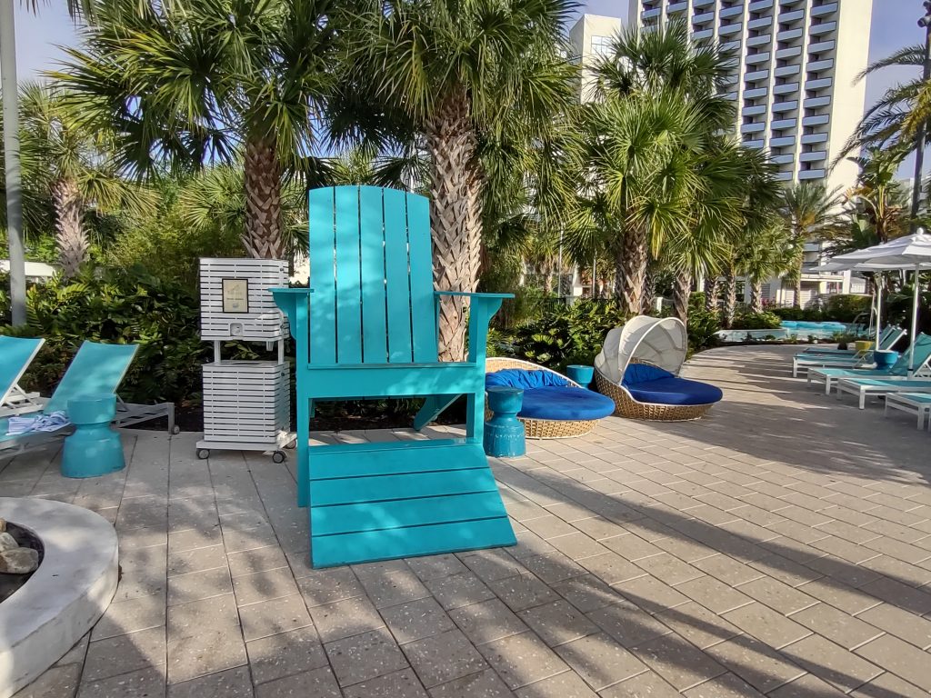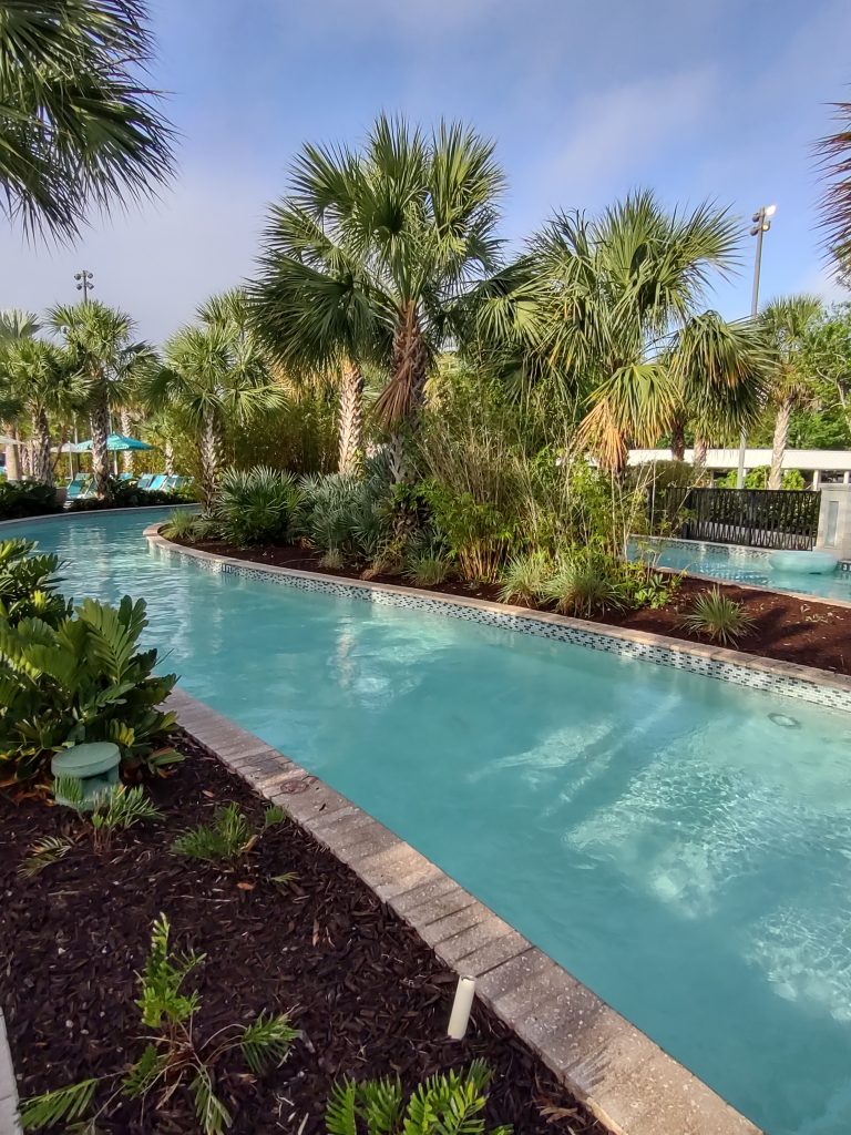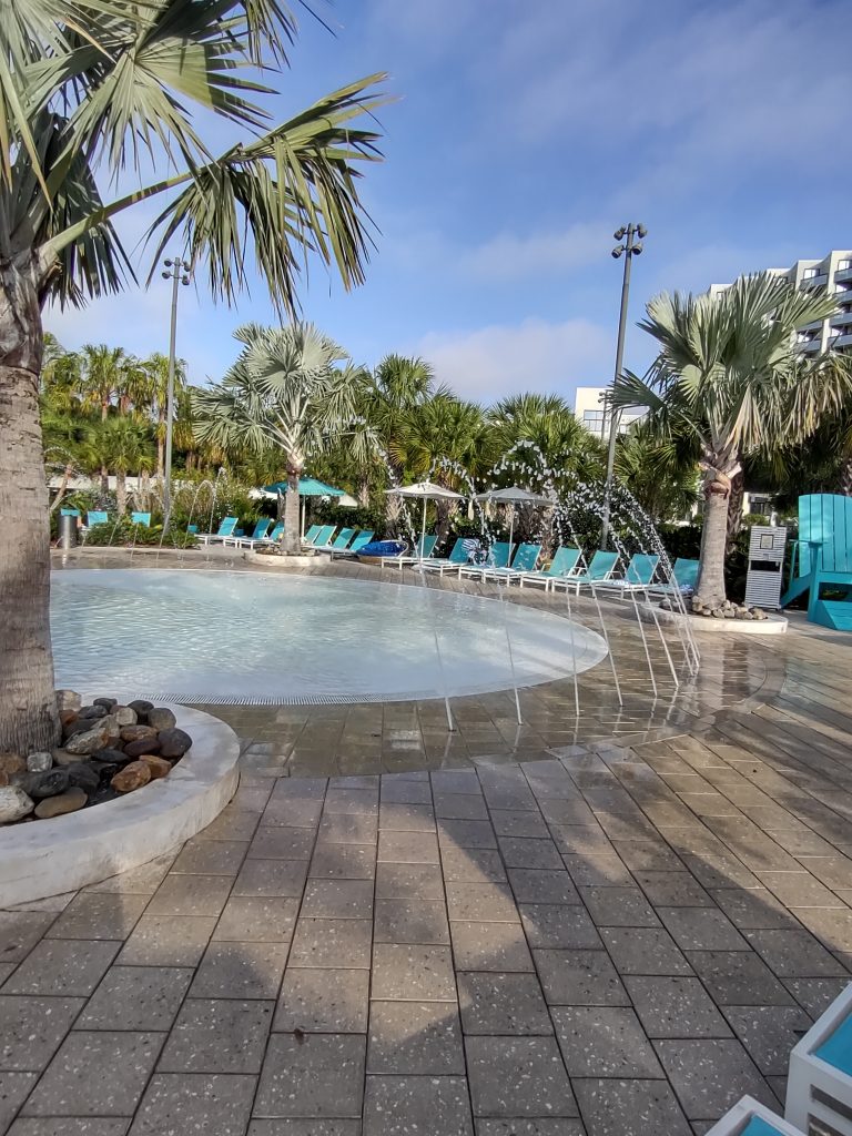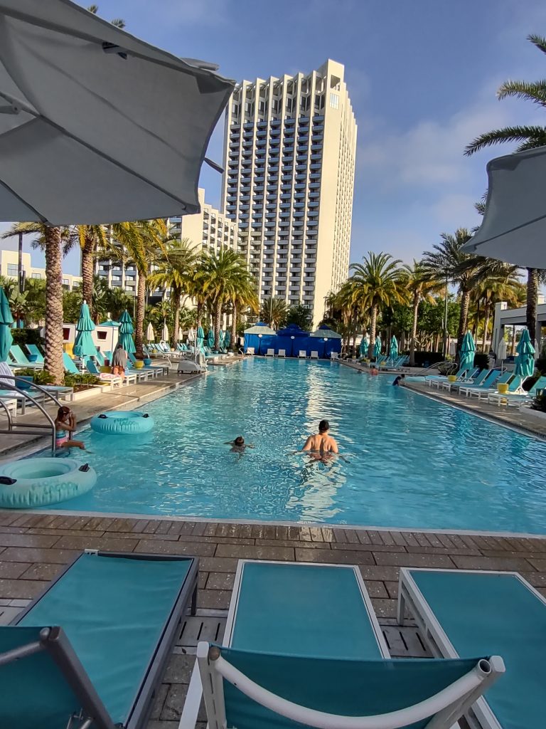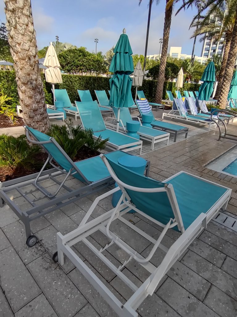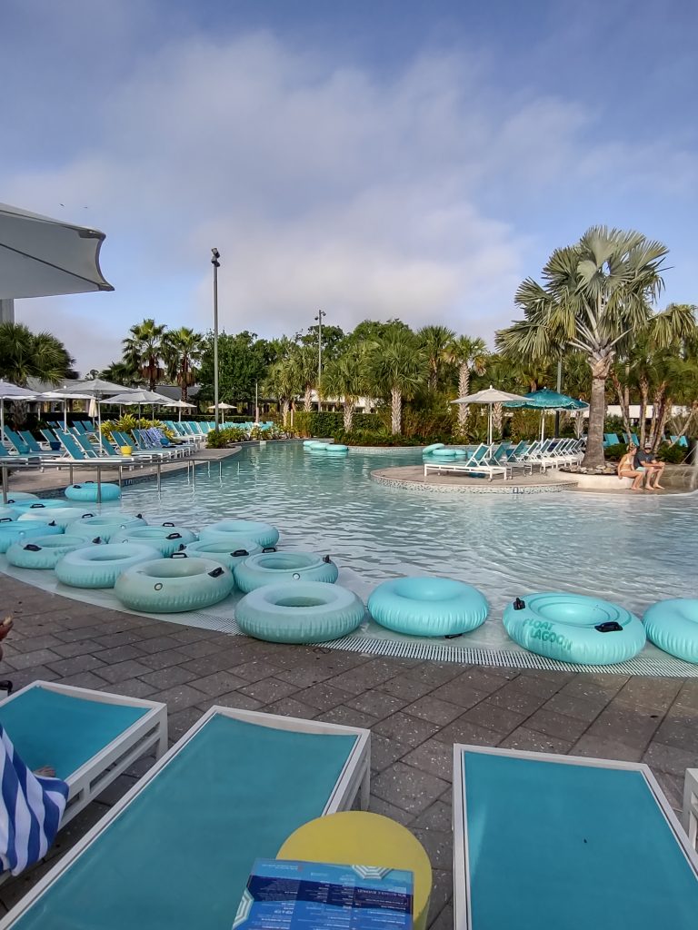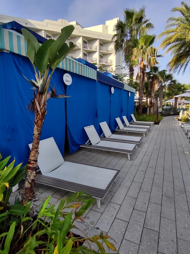 The pool is amazing. With a large pool for lounging and swimming as well as a lazy river to float around in. The tubes were standard-size pool tubes. I was half in, but would not have been able to get on top comfortably. The lazy river takes about 10 minutes to float one full circle around. There was a lot of seating around the pool… Mostly chaise loungers with a few other chairs. Chaise was comfortable for any size. Umbrellas were available between most chairs… Without a rental required. They do have cabanas for rent. I didn’t look into the price at the time, and the webpage fails to list a price. It does have an email link though. The cabana had a mini-fridge, TV, overhead fan, and a safe for belongings. According to the website, it comes with a fruit platter when you arrive.