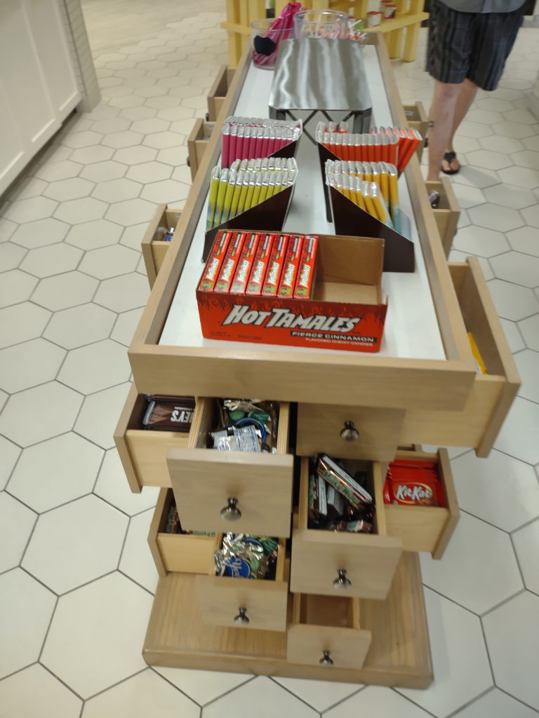 Citrus 28 is a walk-up, quick-stop shop, for grocery items to take to your room, the pool, on the way to the parks, or just to eat in their sitting area. They had Starbucks coffee and pastries as well as an ice cream shop to go along with their other items. The candy store part piqued my interest with some “Florida” candy I had never heard of. They also had an incredible alcohol area if you wanted to have some spirits. Along with the food options, they also had bread toasters, microwaves, etc. for getting food ready.