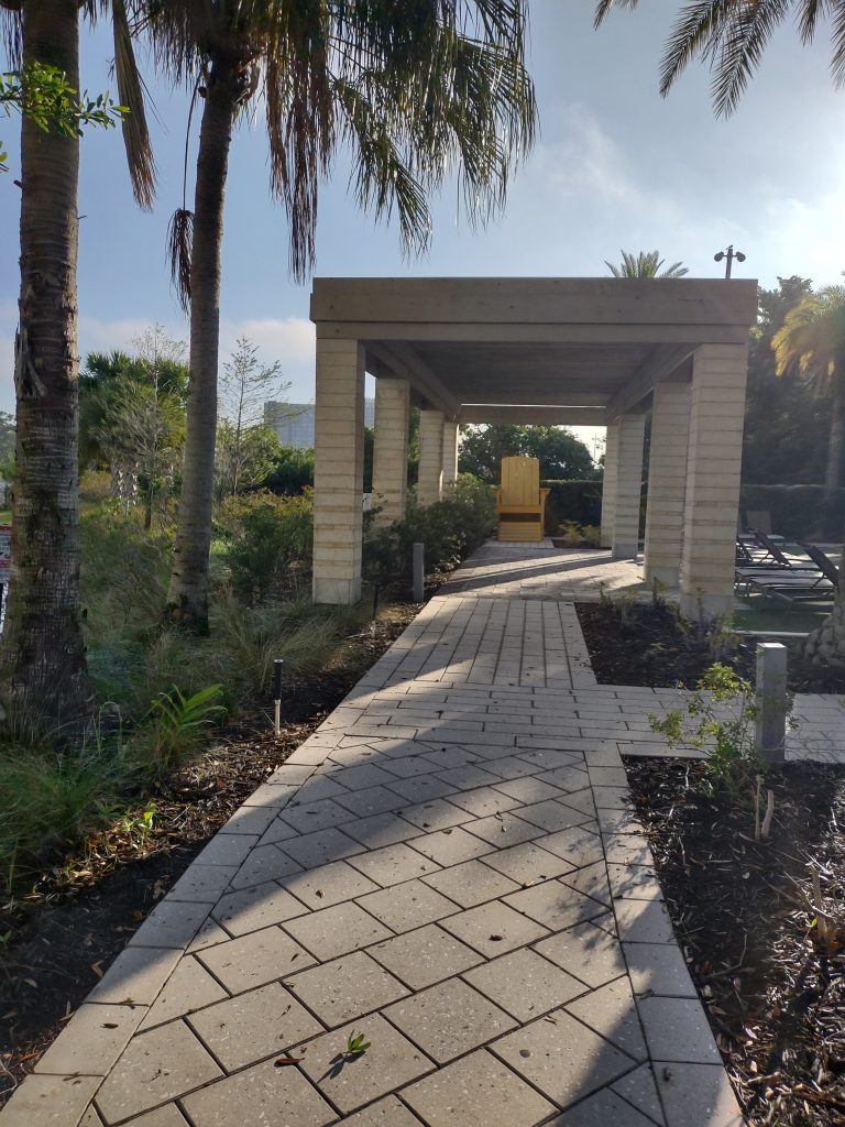 To the side of the pool area was a nice hot tub nestled between some trees. There was also a beautiful yard area with games to play and more chaise lounges for relaxing away from the actual pool area. It was somewhat busy when we walked through during the day, but in the evening it was much less crowded and lit for relaxation or romance!