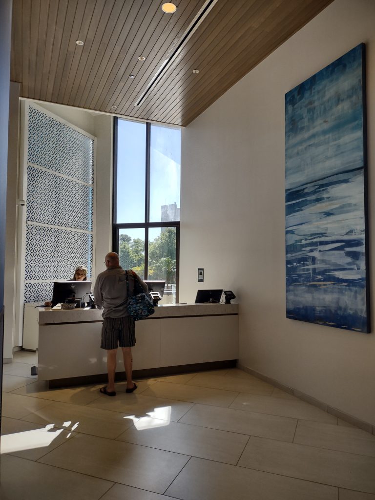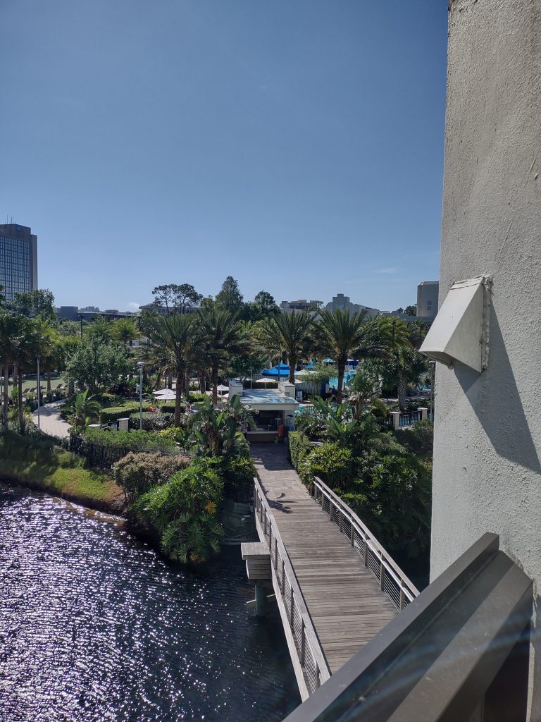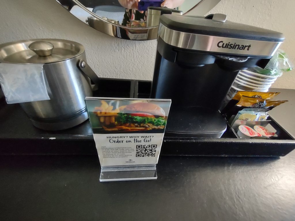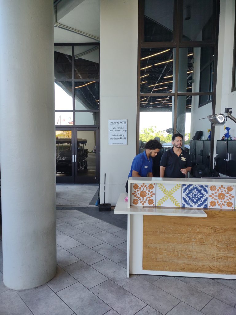 Located next to Disney Springs, this Hilton is welcoming you with their sunglass-wearing smiling emoji on the outside entrance. Their parking lot is big and offers numerous spots for guests. We paid for the overnight valet parking for our two-night stay. It was convenient and the pricing for valet was 35 dollars, only 10 dollars more than the 25-dollar self-parking overnight fee. The concierge and check-in desks are easily accessible when you enter the front doors and everyone was incredibly helpful and polite. As part of the service, we received text messages checking in with us to make sure we were happy with the room, amenities, and asking if we needed anything during our stay.