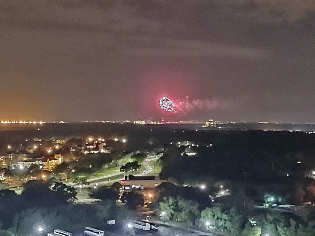 We had an amazing room! The view from our room allowed us to see the Magic Kingdom fireworks and the Epcot fireworks at the same time. We had so much fun trying to watch both. The pictures below make the fireworks look really small, but that is the fault of my phone camera. We actually could see them very well! They also have rooms that face Disney Springs. My husband and I both agreed that it would be neat to look at Disney Springs from our balcony at night, but that is for another trip.