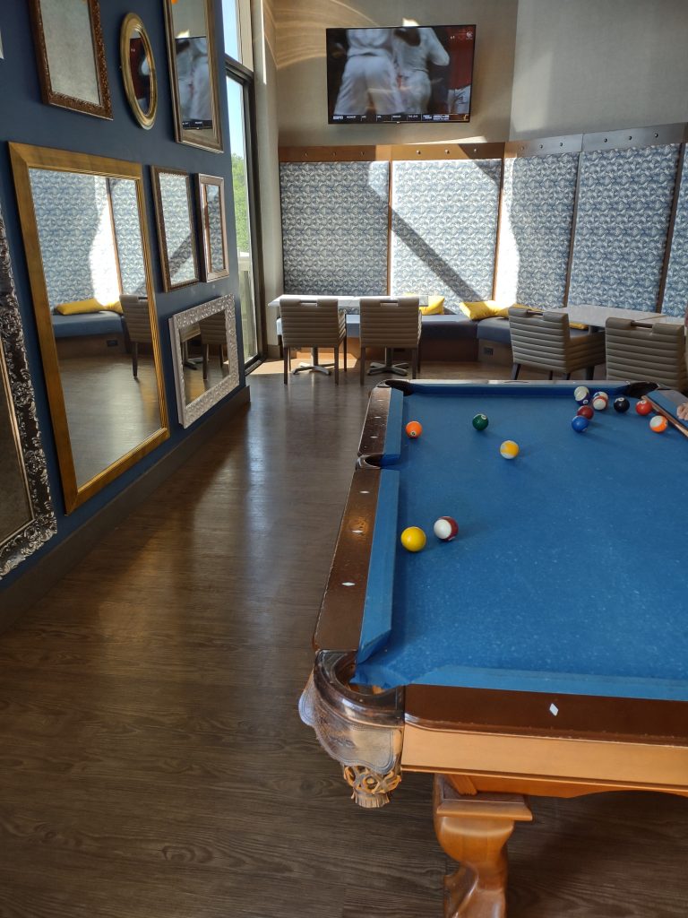 Blue and Sunnies are the two “bars” in the lounge. They have great drink choices, ample comfy seating, and bar/parlor games to keep you entertained. The main bar off of the check-in desks has TVs up for entertainment as well. My favorite part was the view from the balcony in the back bar. It was so beautiful. You stood over the water and looked out over the grounds. It was very relaxing and a great photo spot.