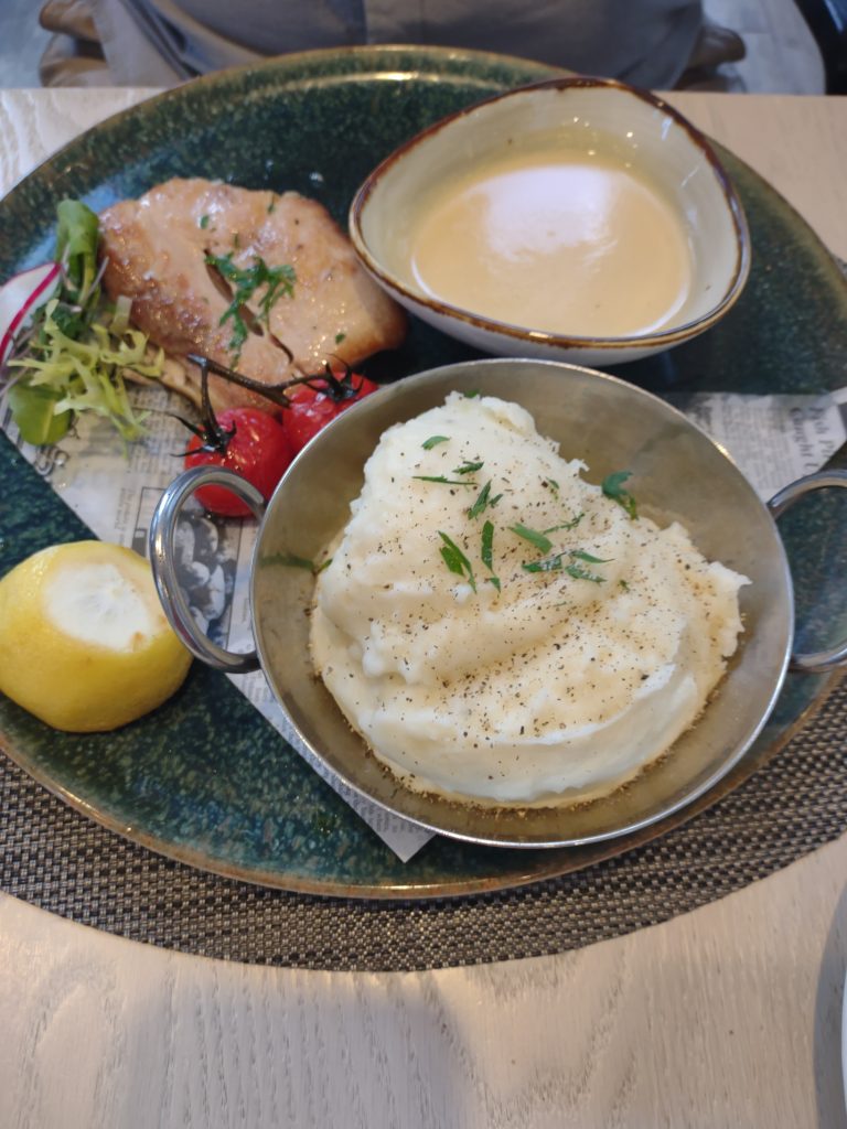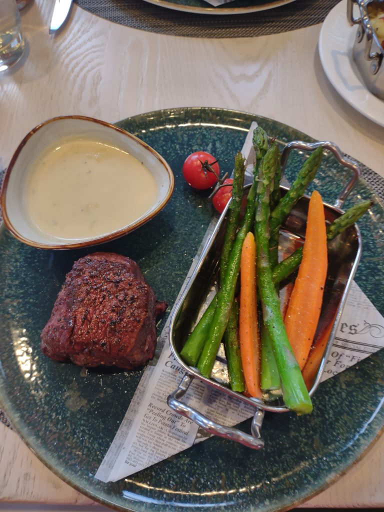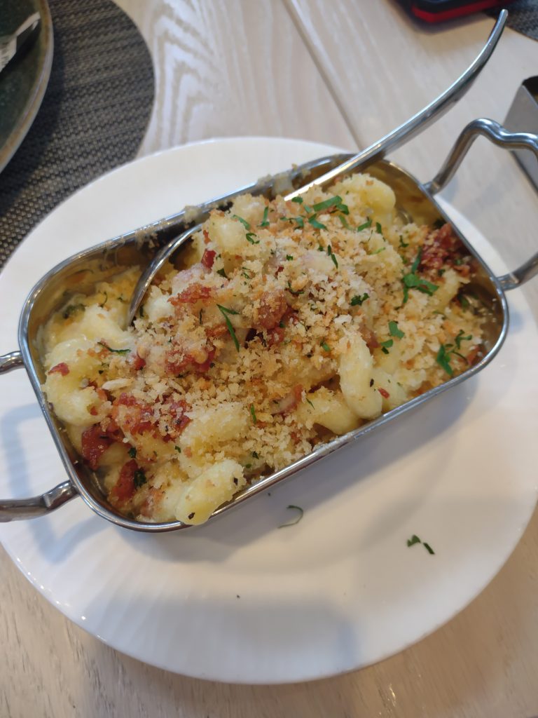 LetterPress called to the English teacher in me! I fell in love with the theming before we even sat down. Beyond the theming, the restaurant has a multitude of different seating options. All were comfortable and welcoming to people of all sizes. We had dinner, early in the evening, and the restaraunt was completely ours. I took advantage of the emtpy hour to take pictures of all of the seating options. I tried the steak and asparagus, my husband had the salmon with mashed potatoes. Both were amazing, but to be honest, it was the sauces that really made the meal amazing. I had the creamy gorgonzola and it was HEAVEN! We also got a side of the mac and cheese. It was delicious as well, but after all the other food we had, neither of us had room to finish it. The restaurant is definitely priced for an upscale place to eat, but we enjoyed the meal.